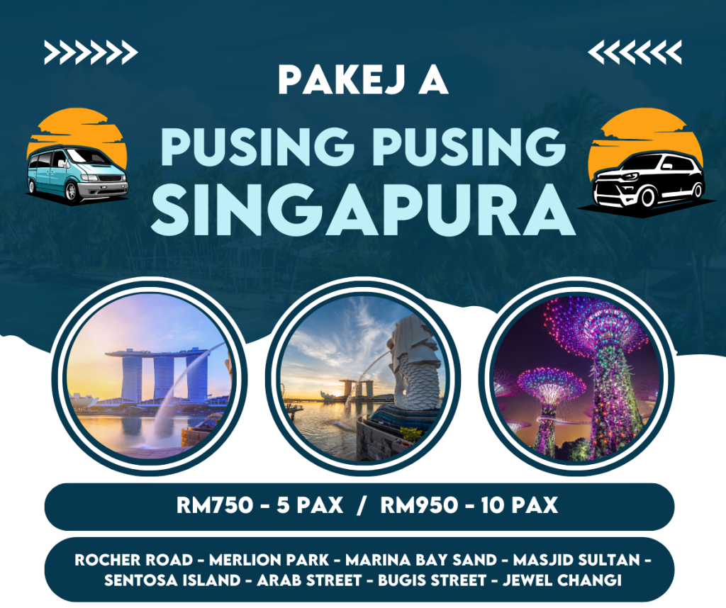 Pusing Pusing Singapura Dalam 1 Hari Pakej Ke Singapura private trip dengan MPV kami . Perjalanan yang selesa tanpa perlu turun di Imigresen untuk pemeriksaan passport. MPV kami yang bersih dan kemas serta pemandu yang berpengalaman dengan tempat-tempat menarik dalam Singapura.